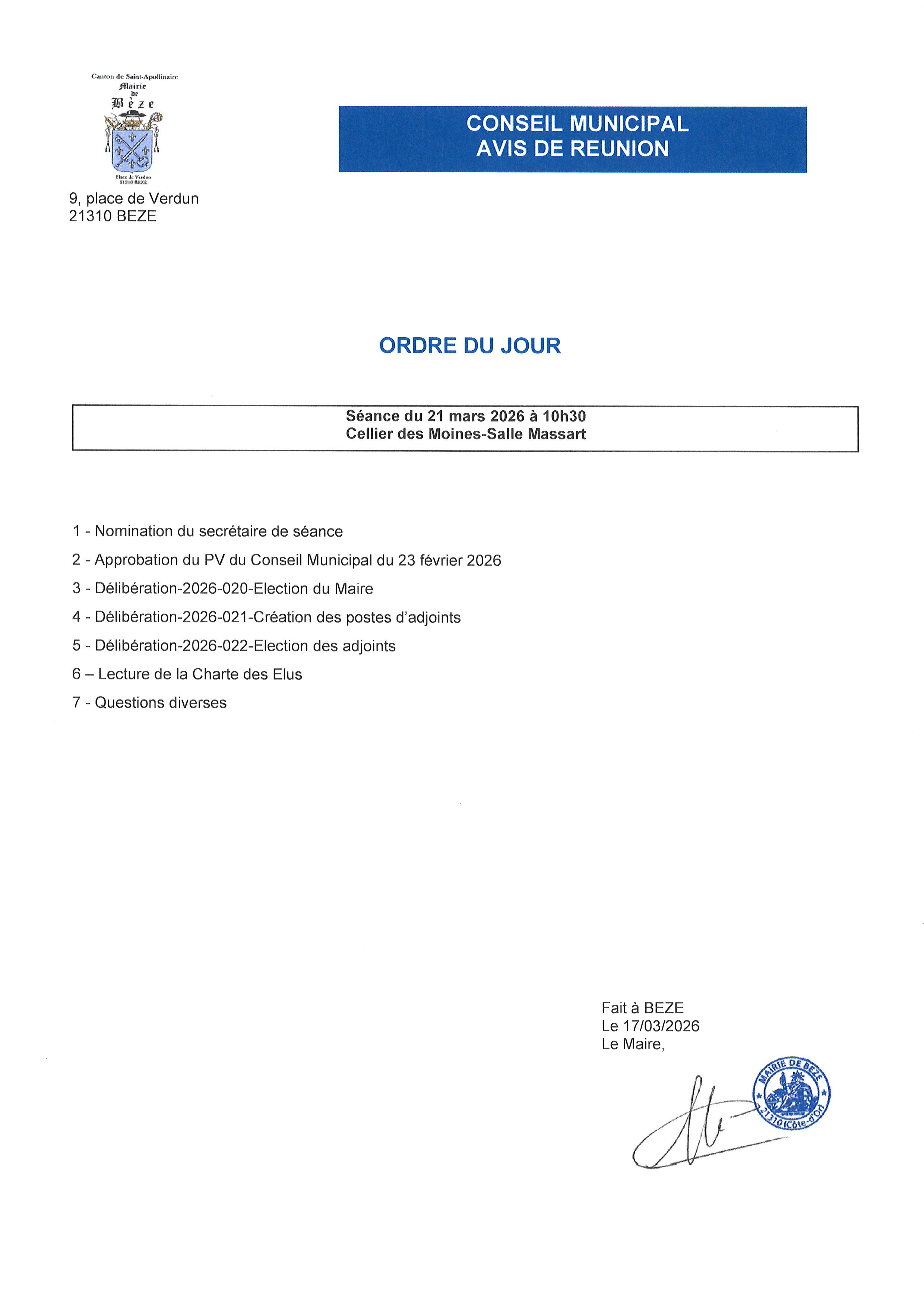 Conseil municipal du 21 MARS 2026