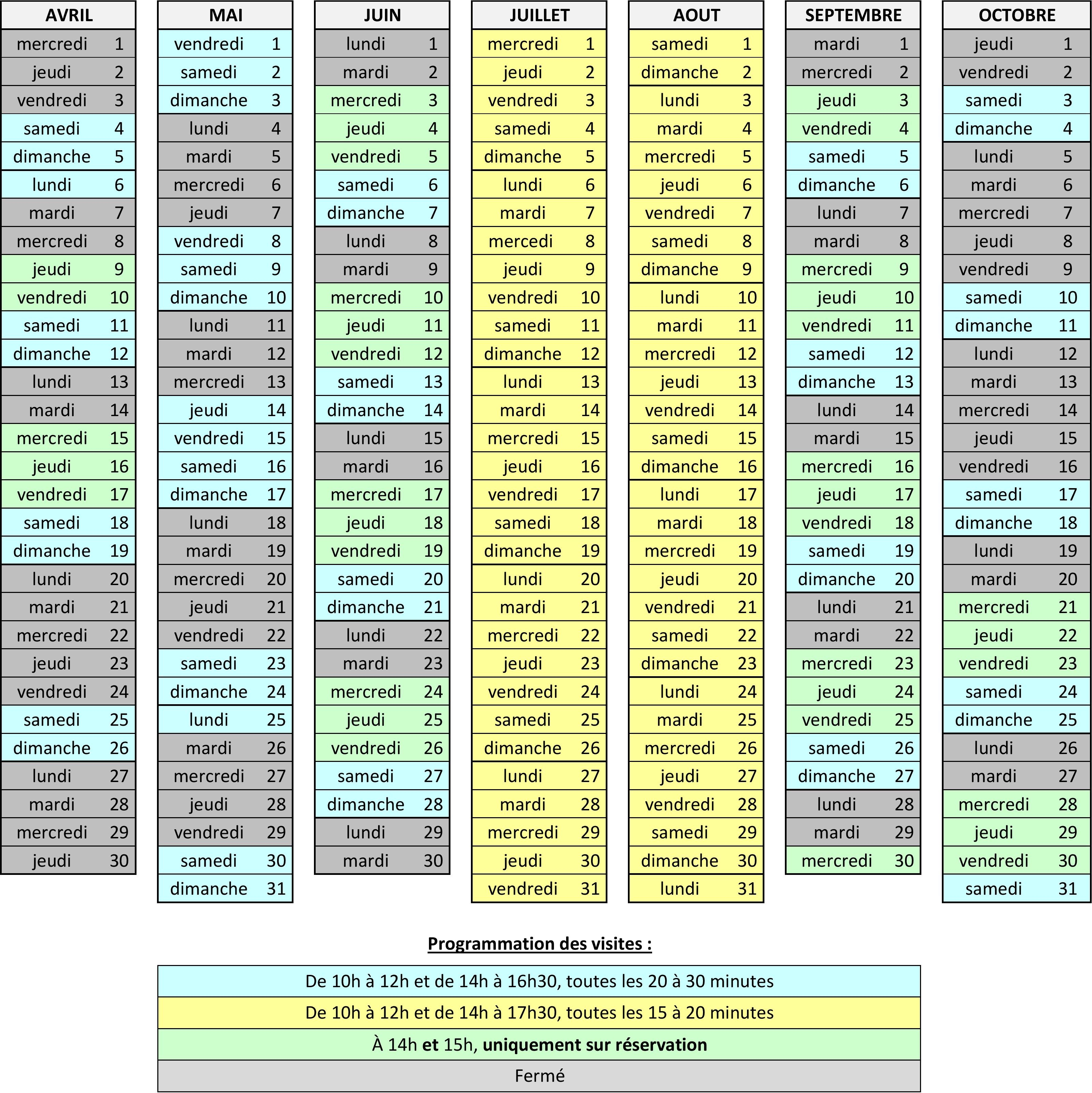 En juillet et août ainsi que les weekends et jours fériés : pas de réservation (sauf groupes 10 personnes et +).